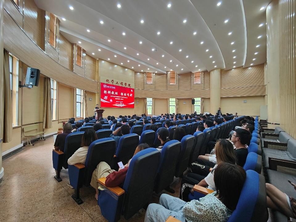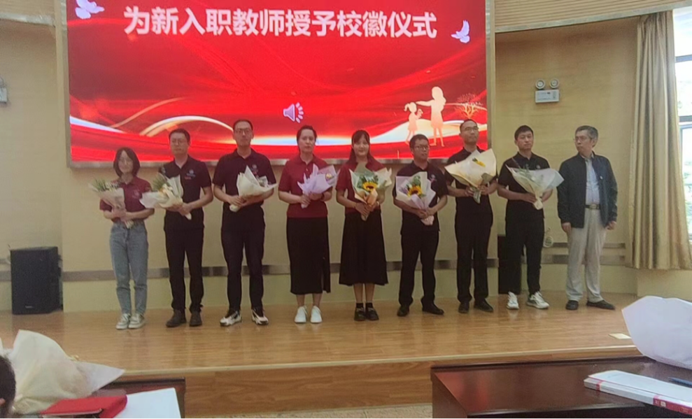 在化工楼100报告厅举行“庆祝第39个教师节表彰大会暨新进教师入职仪式”,并借此机会向学院教师送上花束和节日祝福。
