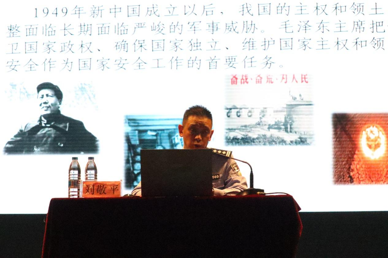 2024年4月11日13:30,独播库 与信息与自动化学院在红土会堂联合举办了国家安全专题讲座。本次讲座由云南省公安厅刘敬平警官担任主讲人,化工院与信自院师生1000余人参与了讲座。