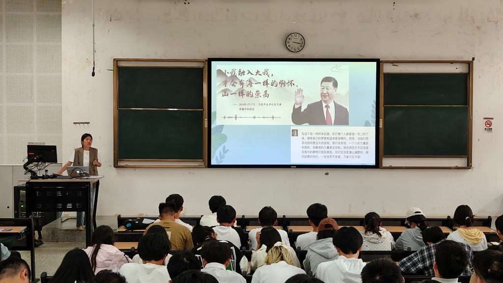 随后,2023级辅导员李凯宇老师分别从就业引航篇、他人成就篇、劳动最美篇、大二启程篇这几个篇章为同学们树立“青春”标杆,激励奋发动力。