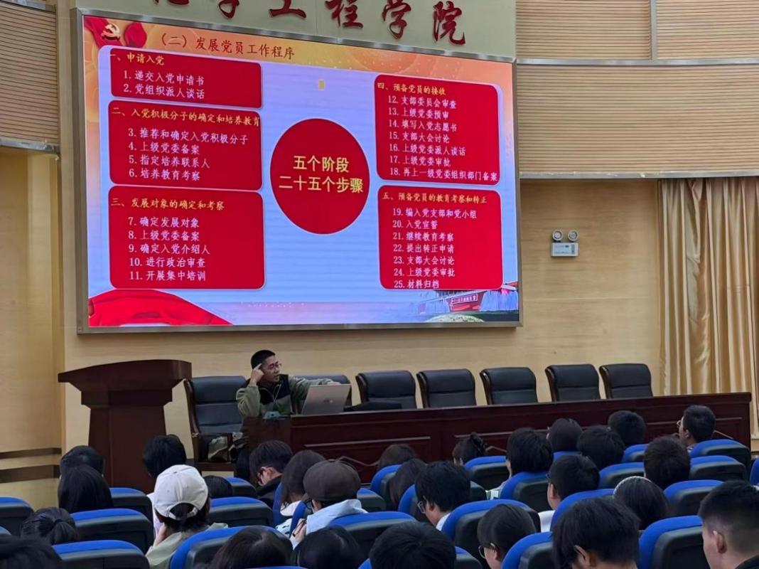 田世垚同志重点阐释了党的二十届四中全会对“教育、科技、人才”一体统筹推进的战略部署,强调教育是基础,科技是关键,青年是希望。他指出,推进中国式现代化,必须依靠科技创新催生新动能,这要求化工人立足专业,勇于挑战关键核心技术,将论文写在祖国大地上。他激励青年学子深刻认识自身在民族复兴伟业中的时代坐标,将个人成长融入国家发展需要。随后,他为青年团员系统梳理了党员发展全流程,引导青年团员将崇高信仰转化为追求进步、争取入党的具体行动。