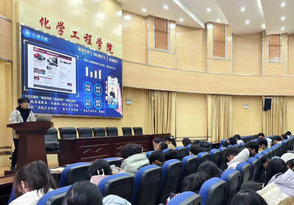 在化工楼100报告厅举办大学生职业生涯规划大赛院赛。本次大赛以“筑梦青春志在四方,规划启航职引未来”为主题,旨在引导学子明确职业方向,提升其职业规划能力与求职竞争力,为未来职场发展奠定坚实基础。化工学院党委副书记宁玲、学工办主任袁敬、辅导员常静华、叶明旺及班主任王春丽等老师受邀担任评委,2024级200余名同学踊跃参与现场活动。