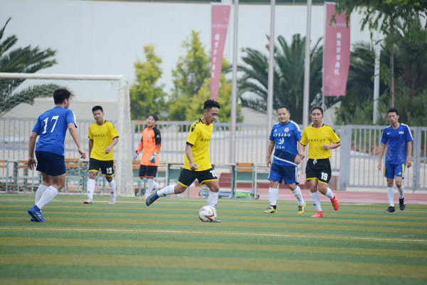 牛治亮副校长开球,比赛正式开始。师生校友毫无保留地展开激烈对攻,奉献了一场精彩的比赛。经过激烈的比赛,校友足球联谊赛获得冠军,昆工教工队获得亚军,化工校友队获得季军。