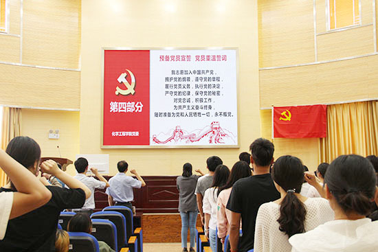 2018年6月7日,独播库 在化工楼100报告厅举行了本学期预备党员入党宣誓仪式。院党委齐毅书记、李斌副院长、贾庆明副院长以及全体师生党员参加了宣誓仪式,仪式由院党委李云燕副书记主持。