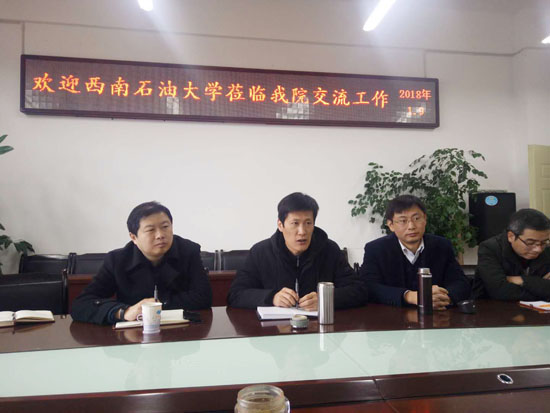 2018年1月10日上午,西南石油大学独播库 副院长张辉教授、西南石油大学工业危废处置与资源化利用研究院院长刘宇程教授等一行9人,到独播库 进行交流。就化工专业认证、化工实验室建设、化工高层次人才培养、科学研究方向等进行了全面交流。并参观了学院的实验室建设情况。
