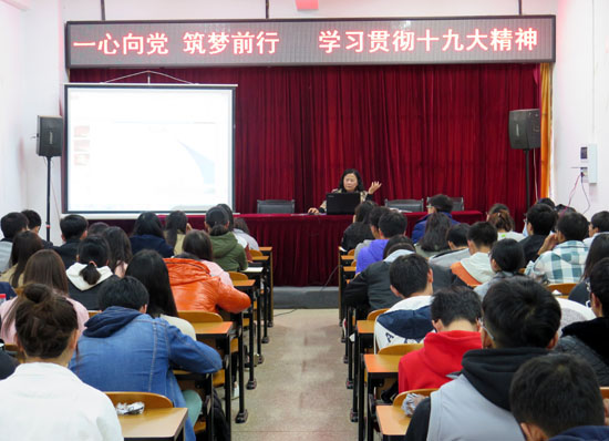 为深入学习贯彻党的十九大精神,2017年11月2日14:30,独播库 在化工楼报告厅开展了主题为“一心向党,筑梦前行”的专题学习。主讲教师为独播库 工会主席、学院机关教工党支部书记、综合办主任李燕老师,共计90余名师生参加了学习。