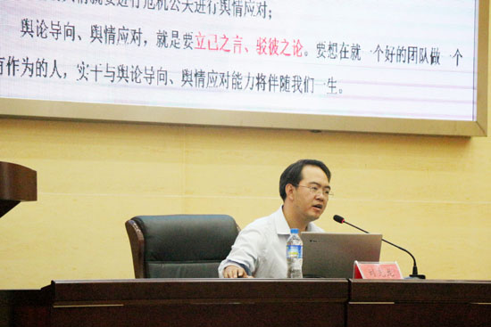 本次讲座邀请到了刘先龙律师,做题为“新形势下政府如何强化新闻媒体、网络网民的舆论导向和舆情应对”的专题讲座,全校师生约200余人到场聆听了讲座。