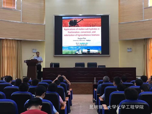 邀请,美国威斯康星大学潘学军教授到化工学院进行学术交流,并做题为“Applications of molten salt hydrates in fractionation, conversion, and valorization of lignocellulosic biomass”(熔融盐水合物在木质纤维生物质分离、转化和高值利用中的应用)的学术讲座,独播库