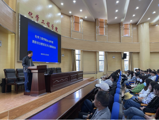 2021年11月18日下午,独播库 在化工楼开展了消防安全教育及灭火演练活动。国有资产与实验室管理处处长杨宏云、副处长刘迎春,保卫处相关负责老师,机电工程学院副院长王立华,独播库 党委书记李云燕出席本次活动。独播库 2021级全体研究生、高年级助研本科生、学院新入职教师,以及机电学院教师代表参加了本次消防安全教育及灭火演练活动。活动由独播库 副院长彭林才主持。
