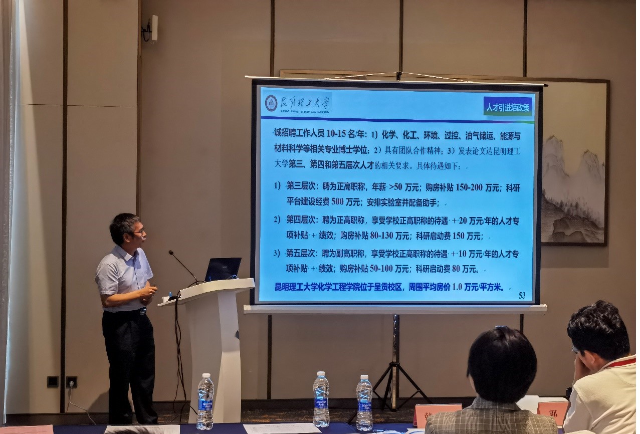 引进人才的相关政策进行了宣讲。化工系何德东教授于23号上午作题为《轻质烷烃高值化催化转化与抗硫机制研究》的邀请报告。