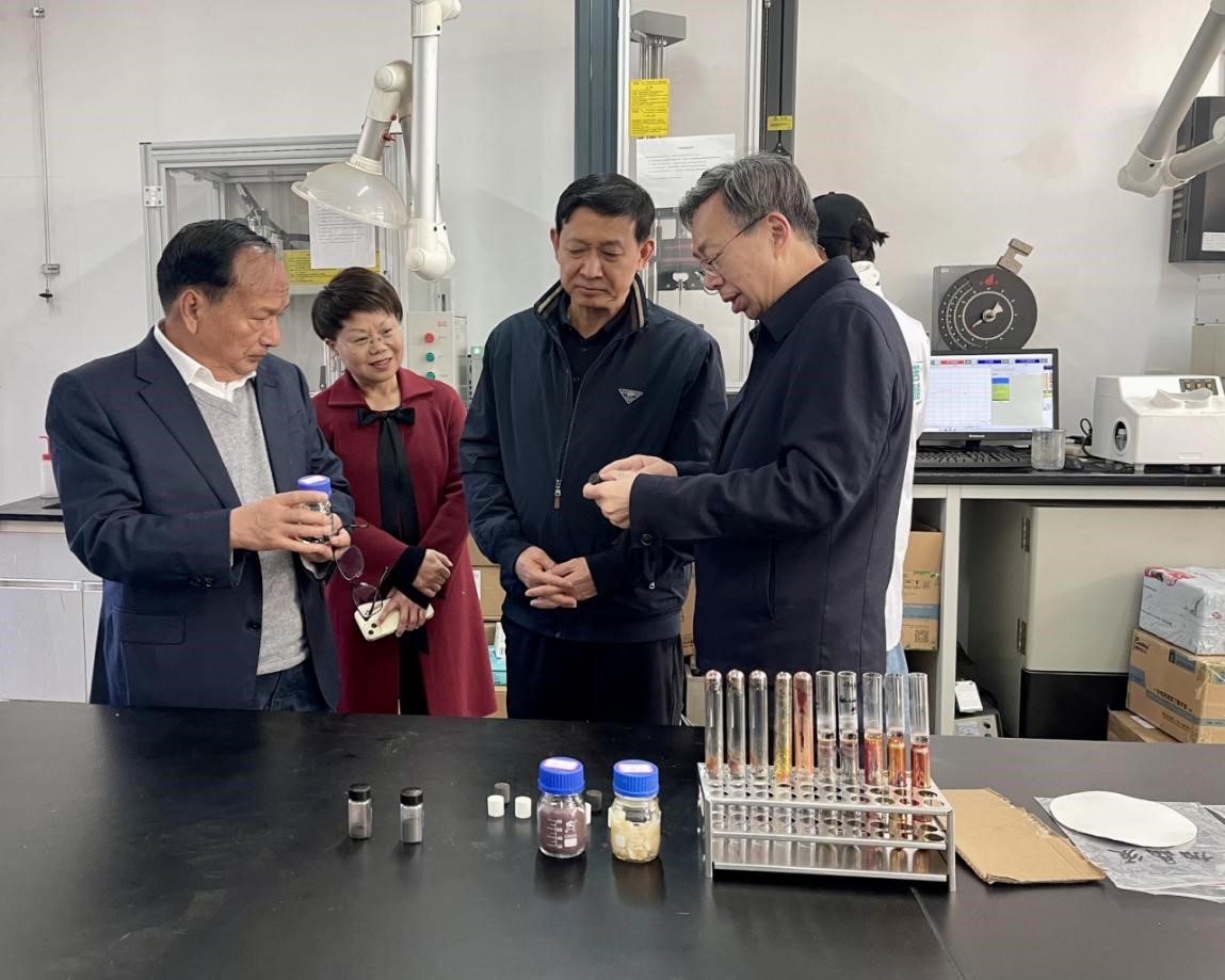省政协领导一行参观了云南省磷化工节能与新材料重点实验室。并与梅毅教授进行交谈,了解了专家的工作、科研情况,听取相关意见和建议。同时,对梅毅教授多年围绕基础磷化工的流程再造、节能减排、循环经济、产品升级,磷系阻燃材料、储能材料开展研究与工程开发所做出的贡献表示感谢,并致以最真诚的问候和祝福。