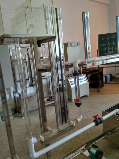 本实验装置可以通过测量动压头,静压头和位压头随管径,位置,流量的变化情况,验证连续性方程和机械能衡算方程,观测流体流速与管径关系,流体阻力与流量关系。