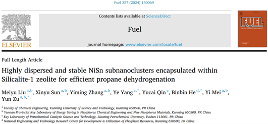 为论文第一署名单位,硕士研究生刘美玉为论文第一作者,祖运副教授为论文通讯作者,该研究工作得到了国家自然科学基金(22362019)、云南省基础研究项目基金(202301AT070445, 202101BE070001-031, 202101AU070154),云南省“兴滇英才支持计划”青年人才专项以及云南省磷化工节能与新材料重点实验室平台的资助。论文链接://doi.org/10.1016/j.fuel.2023.130069